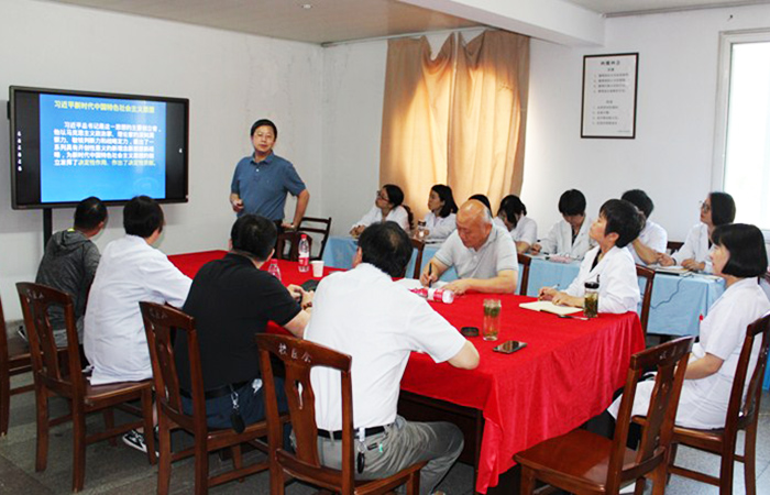 校医院直属党支部书记郭亚主持了开班式,全体党员参加并认真听讲。(学校医院)