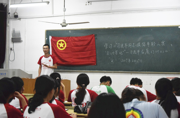 本期培训班紧扣学习习近平新时代中国特色社会主义思想,组织了《学习习近平总书记在纪念五四运动100周年大会上重要讲话精神》《学生干部要带头培育和践行社会主义核心价值观》《信仰之光点亮青春之路》《用好新媒体,做网络文明传播者》《共青团改革背景下的高校学生社团建设与管理》《中国道路的内在逻辑》6场辅导报告。在开展的学习《“习近平同志提倡年轻人要‘自找苦吃’”——习近平在厦门(十三)》主题研讨会中,同学们围绕“自找苦吃”这个中心话题,各抒己见,畅所欲言,并纷纷表示要以饱满的热情满负荷的投入到新学年的学习工作中去。