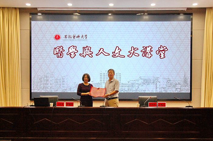 9月17日下午,我校素质教育品牌栏目“医学与人文大讲堂”第55期开讲。北京大学医学人文研究院副院长郭莉萍教授应邀为我校师生作题为《何为叙事医学》的报告。校党委副书记刘群英主持报告会,并向郭莉萍颁发了“医学与人文大讲堂”荣誉证书。副校长肖圣龙现场聆听了报告会。