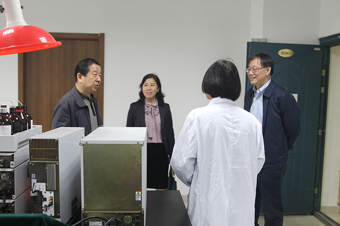 调研中,储常连一行在校领导陪同下,实地考察了药学院药学分子生物学实验平台、新药评价实验平台、药物设计与合成实验平台等实验室。
