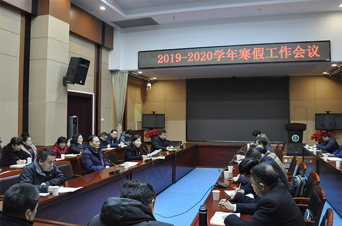 1月10日上午,学校召开2019-2020学年寒假工作会议,部署寒假和春节期间工作。校长曹云霞主持会议,副校长余永强、肖圣龙、吕雄文出席会议。
