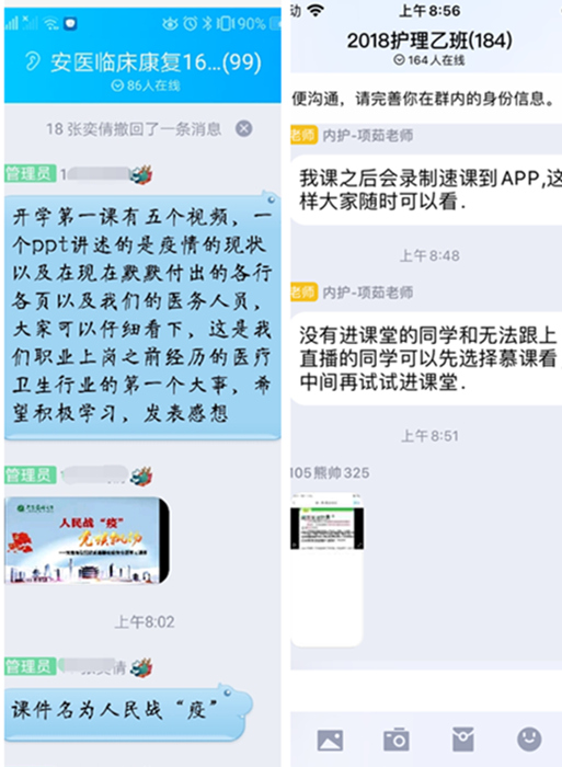 此外,为应对因网络或平台系统崩溃引起的特殊情况,所有课程均提前准备应急预案,通过平台或者建班级QQ群、微信群上传课程教学PPT、练习题等,引导学生自主学习。课后,各学院组织教师进行经验分享,组织学生交流开学第一课学习心得体会,为进一步完善线上教学工作提供经验。