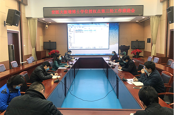 2月21日上午,我校召开博士学位授权点申报工作第三次推进会,校长曹云霞主持会议。