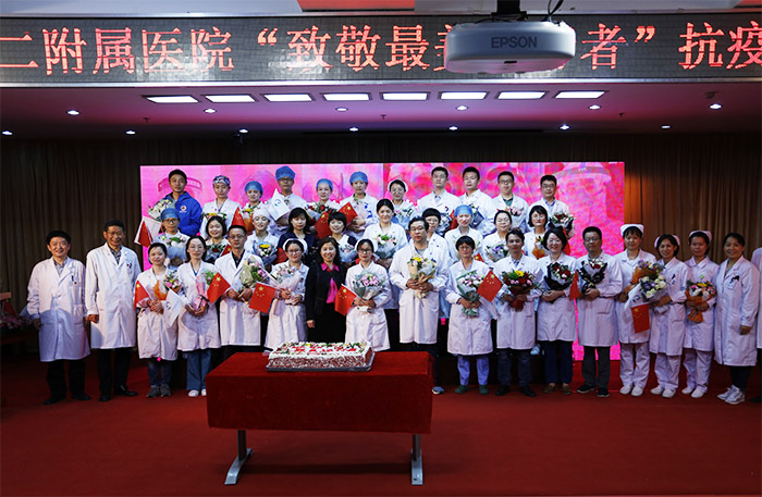 曹云霞在致辞中向该院在疫情防控工作中坚守岗位、无私奉献的全体医护人员表示了敬意。她指出,面对新中国成立以来传播速度最快、感染范围最广、防控难度最大的重大突发公共卫生事件,从一封封请战书、一个个红手印,到星夜驰援,同时间赛跑、与病魔较量,安医人经受住了考验和磨练,弘扬了弘毅担当、精医报国、康民济世的安医精神,彰显了责任与担当。在这场疫情阻击战中,二附院人坚持继承和发扬优良传统,充分发挥自身优势,守望相助,主动作为,展示了医务工作者的良好风采,也用实际行动为医疗事业谱写了可歌可泣的壮丽诗篇。