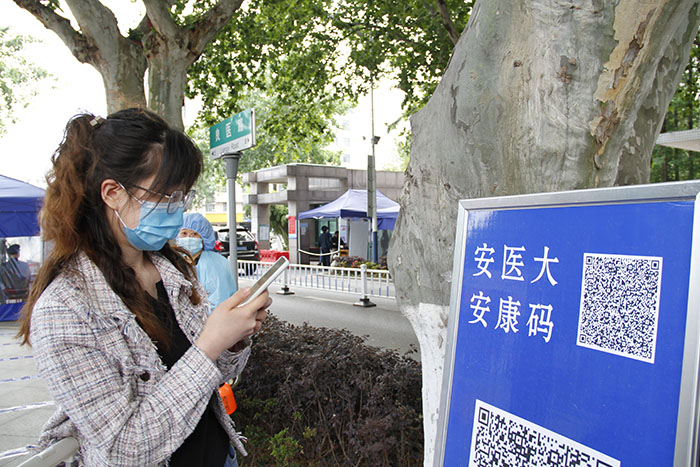 “之前接到通知返校的时候,心情便如同久旱逢甘霖,直到今日踏入校园的时候,才真切地感受到‘开学了’。安医大,我回来啦!”当日早晨8点左右,药学院2017级药学专业的研究生王聪刷校园一卡通通过闸机后第一个到达学校梅山路校区。在学校工作人员的指导下,经红外测温通道测温、身份证信息核验、扫描“健康码”、行李消杀、口罩更换等入校环节后,王聪根据指示牌和志愿者引导,来到了所在学院的入学报到处。
