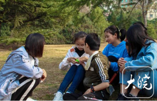 “除了特殊情况,我们服务队基本上每个周末都会组织志愿者去看望陪伴这些孩子,我们能做的就是尽量多一点的陪伴和守护,充当他们连接外界的桥梁。虽然我们可能跟他说了几十句话,他都一点反应都没有,但是只要有那么一次他抬头看你了,或者对你笑了一下,所有的付出就有了意义。”服务队现任队长章正雪同学介绍说。无论是玩乐趣盎然的拼图游戏,还是手把手教授折纸;无论是一起阅读色彩缤纷的绘本,还是给他们表演惊喜连连的魔术,志愿者们精心准备的活动,让“星宝”们在长期的引导和陪伴中慢慢看见了世界的五彩斑斓。