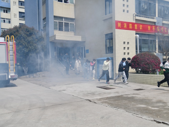 中午12时30分,接到演练总指挥指示后,现场指挥员按程序发出演练指令,尚智楼4号学生公寓门前烟雾滚滚,消防警报声立即响起。公寓内的学生在疏散引导员的带领下,捂住口鼻,低姿行走,迅速从各楼层有序撤离至室外安全区域。短短几分钟时间内,1000余名学生已迅速疏散至安全区域。