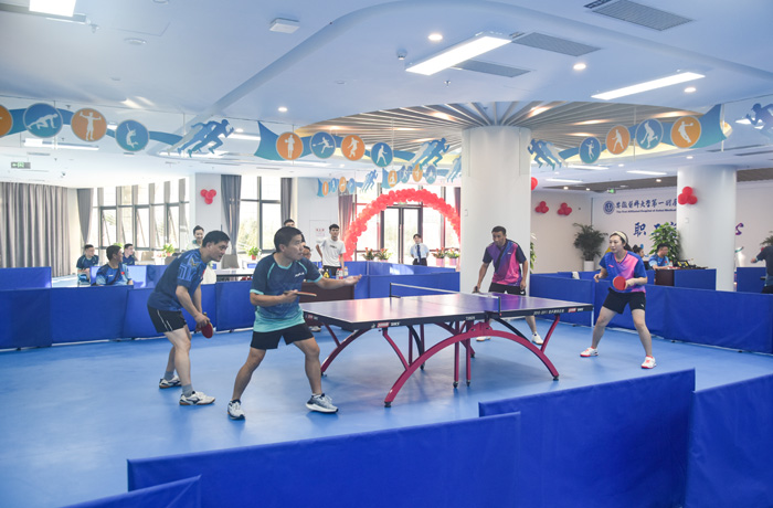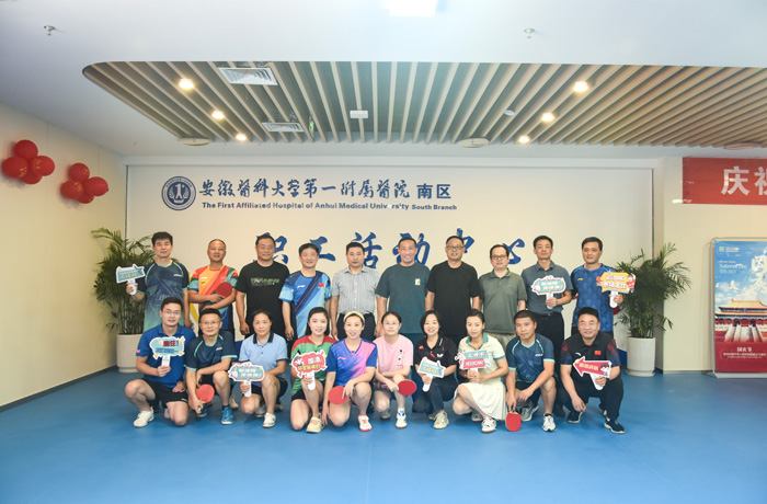 9月28日下午,第一附属医院南区举行职工活动中心揭牌仪式暨“迎国庆”乒乓球邀请赛。校党委常委、副校长徐朝阳,第一附属医院院长孙倍成出席揭牌仪式并参加乒乓球比赛。
