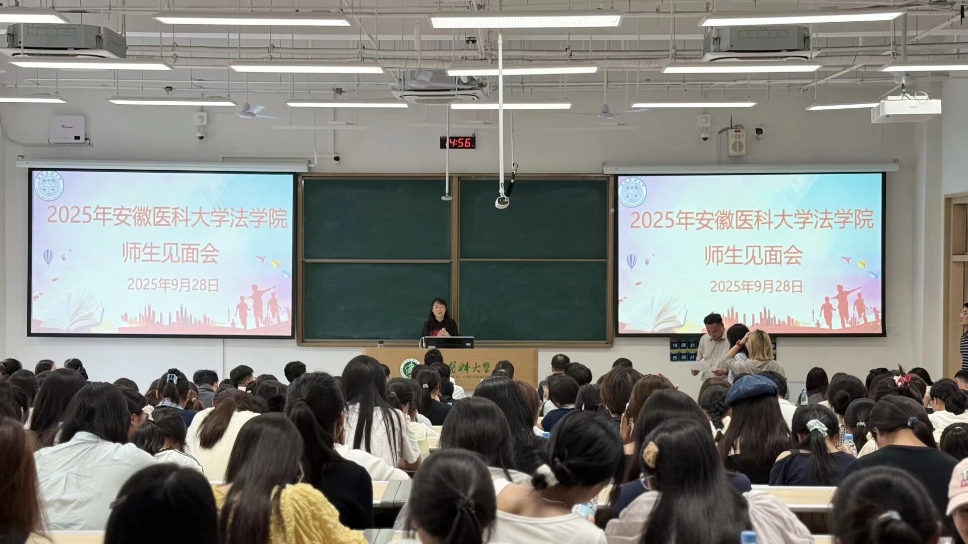 9月28日下午,法学院在新医科中心知源楼F301教室举办2025级新生师生见面会。院党委书记郑圣德、院长马青连、院党委副书记刘燕以及副院长范辉出席会议。见面会由刘燕主持。
